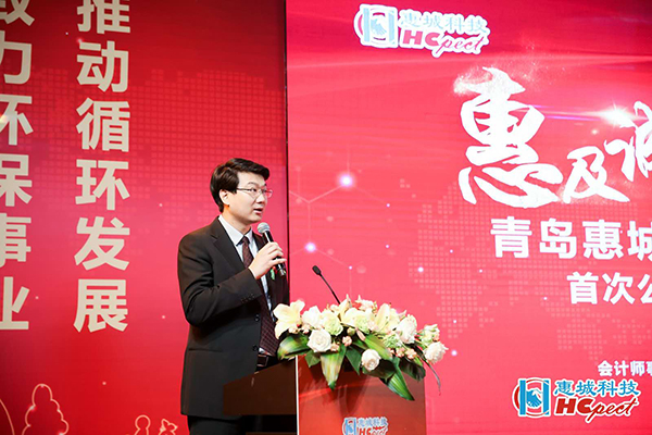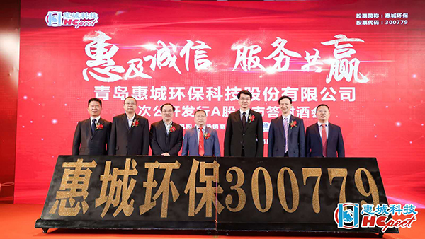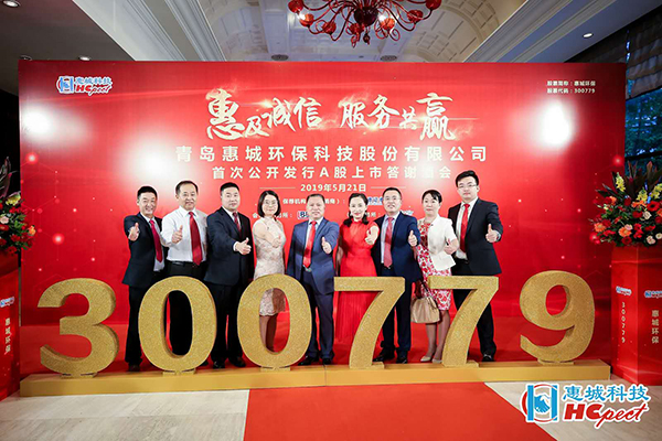 5月22日上午,青島惠城環保科技股份有限公司上市儀式在深圳證券交易所東門8樓大廳正式啟動。青島市地方金融監管局副局長王偉光、青島惠城環保科技股份有限公司董事長張新功、中德證券有限責任公司首席執行官段濤致辭,隨著開市寶鐘的敲響,惠城環保正式上市。