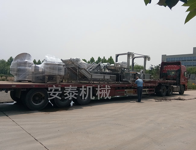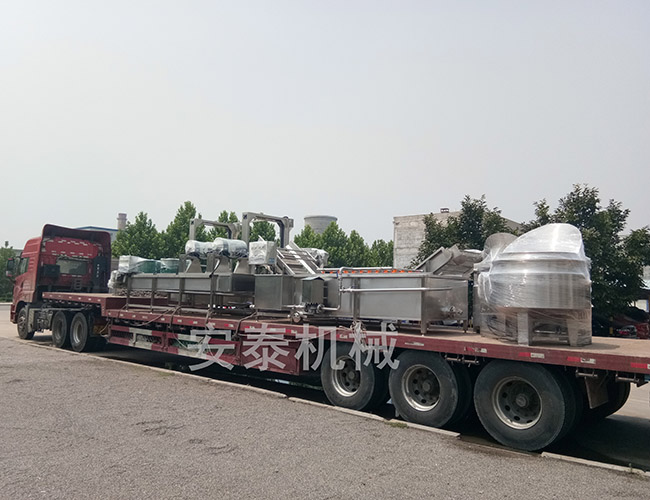 2019年7月15日真是一個艷陽高照的日子,站在外面能夠切身感受到夏日的熾熱,四川客戶定制了一套流水線設備,包括高壓氣泡清洗機、解凍機、提升機、攤涼線和自動翻筐夾層鍋,車間師傅把設備挑到辦公樓前邊,在炎熱的太陽底下打包設備,用塑料薄膜將所有設備的關(guān)鍵部位纏起來,在叉車師傅的配合下,將所有的設備裝上車,現(xiàn)已全部裝車完畢,靜待出發(fā)。