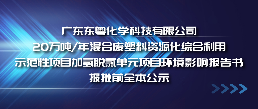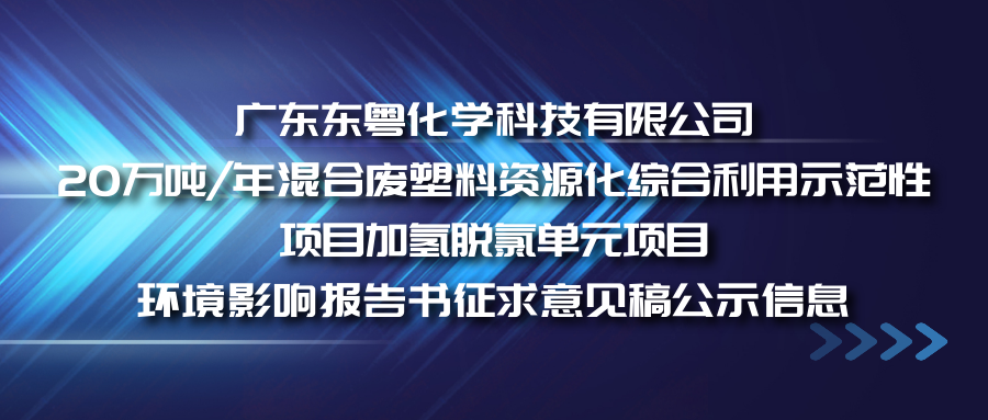 廣東東粵化學科技有限公司20萬噸/年混合廢塑料資源化綜合利用示范性項目加氫脫氯單元項目環境影響報告書征求意見稿公示信息